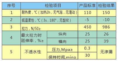 4、卷材具有優(yōu)良的耐溫性和不透水性,高溫無滑動,低溫不裂,從而不受凍融循環(huán)影響。