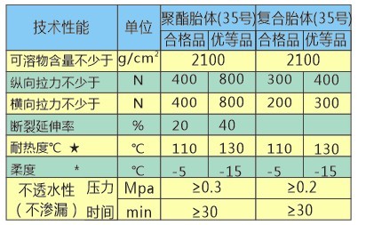 其低溫柔性達(dá)-5℃以下,耐熱度在100℃以上,各項(xiàng)性能指標(biāo)均達(dá)到標(biāo)準(zhǔn)要求。其延伸率好,耐水性能佳,使用壽命在15年以上。