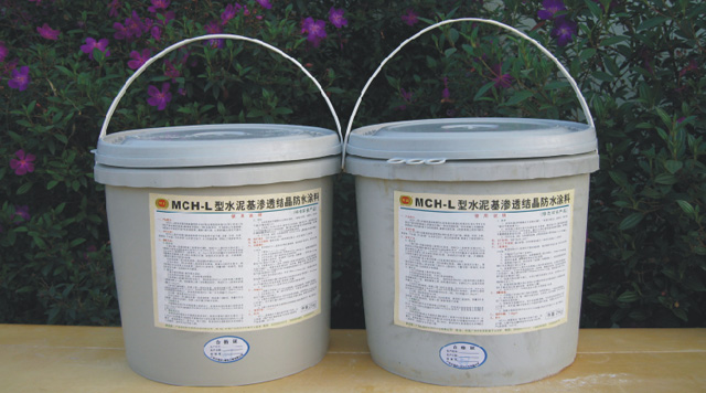 一、產(chǎn)品簡介 MCH-L型水泥基滲透結(jié)晶型防水涂料是由美國進(jìn)口主要原料生產(chǎn)的,可涂刷在混凝土表面或內(nèi)摻的一種水泥基材料??上蚧炷羶?nèi)部滲透,在混凝土中形成不溶于水的結(jié)晶體,填塞毛細(xì)孔道,從而使混凝土密實(shí)不透水。 二、防水機(jī)理 MCH-L型水泥基滲透結(jié)晶型防水涂料是以高強(qiáng)水泥、硅砂和多種特殊的活性化